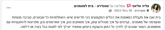 והכי חשוב, את מעטפת הליווי האישי ניתן להתאים כמו כפפה לצרכים שלכם (יותר ליווי עסקי / יותר ליווי מקצועי) מה שאומר שהתמיכה שכל מאמן מקבל היא מדויקת בול עבורו.